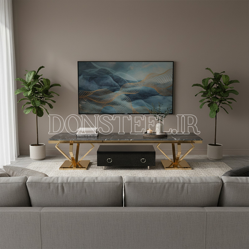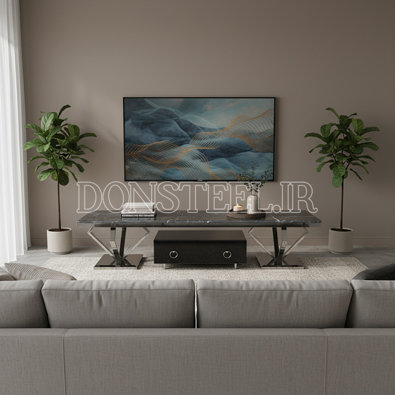 میز تلویزیون استیل مدل الماس، آخرین قطعه برای تکمیل پازل دکوراسیون لاکچری پذیرایی شماست. این میز با پیروی از زبان طراحی کلکسیون الماس، نه تنها فضایی مستحکم و زیبا برای تلویزیون شما فراهم میکند، بلکه خود به یک اثر هنری تبدیل میشود. طراحی آن به گونهای است که ضمن ایجاد فضایی برای دستگاههای دیجیتال، به دکوراسیون شما نظم و جلوهای لوکس میبخشد. این میز تلویزیون را در کنار میز جلو مبلی استیل و میز عسلی استیل مدل الماس قرار دهید تا شاهد هارمونی بینظیری در مجموعه مبلمان استیل خود باشید. قیمت این محصول، بازتابی از کیفیت بیرقیب، طراحی ماندگار و هنر به کار رفته در ساخت آن است.