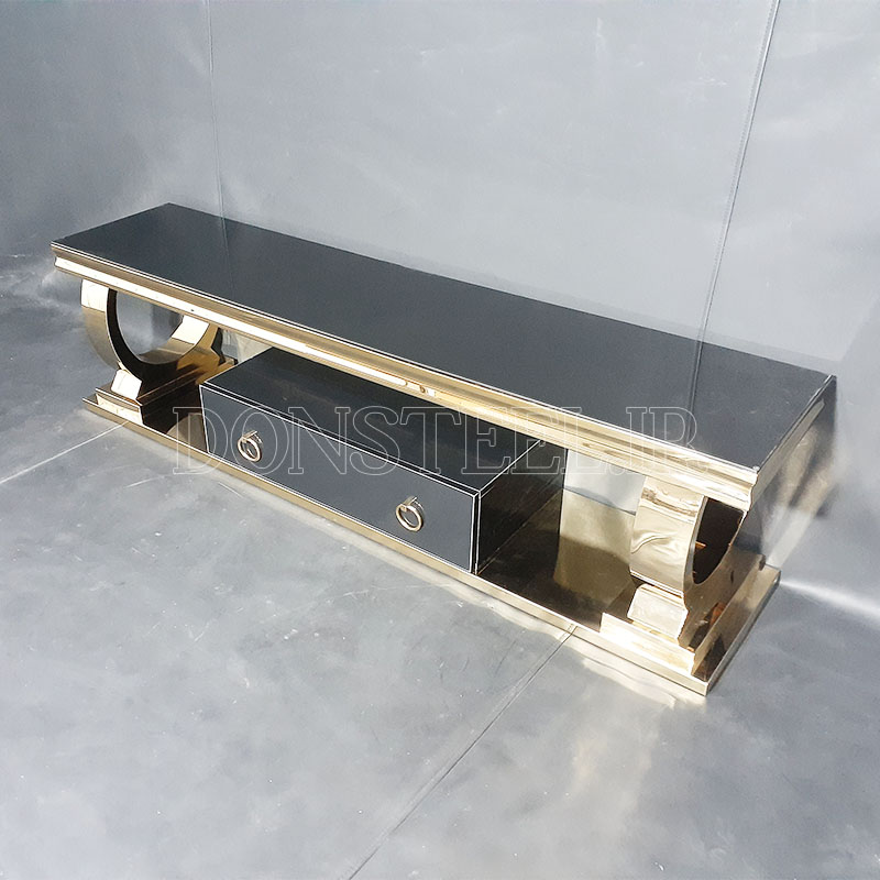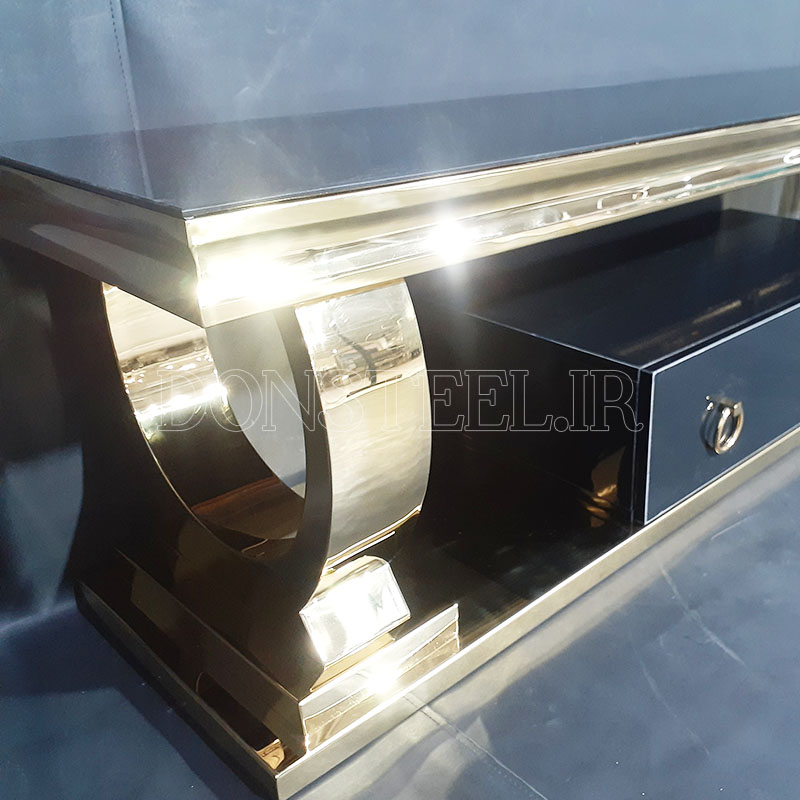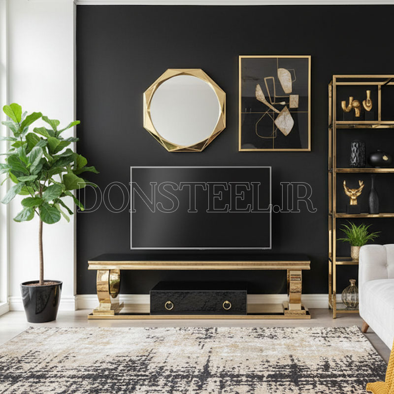 طراحی پایههای هلالی علاوه بر زیبایی خاص، استحکام و تعادل میز را تضمین میکند. این محصول با ابعاد استاندارد خود فضای مناسبی برای قرار دادن تلویزیون، سیستم صوتی و لوازم دکوراتیو فراهم میآورد. مقاومت بالای استیل در برابر رطوبت و تغییر رنگ، دوام طولانیمدت و نگهداری آسان را به همراه دارد.
