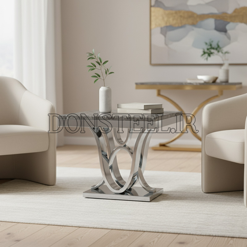 در یک دکوراسیون کامل، هماهنگی اجزا حرف اول را میزند. میز عسلی استیل مدل سه خط دقیقاً با همین هدف طراحی شده است. این میز، فرم مجسمهگونه و زیبای میز کنسول همنام خود را در ابعادی کوچکتر و کاربردیتر تکرار میکند تا به عنوان یک قطعه مکمل، زیبایی دکوراسیون شما را کامل کند. قرارگیری آن در کنار کاناپه، فضایی ایدهآل برای پذیرایی یا قرار دادن یک وسیله دکوری کوچک فراهم میکند و زبان طراحی لوکس فضا را تقویت مینماید.